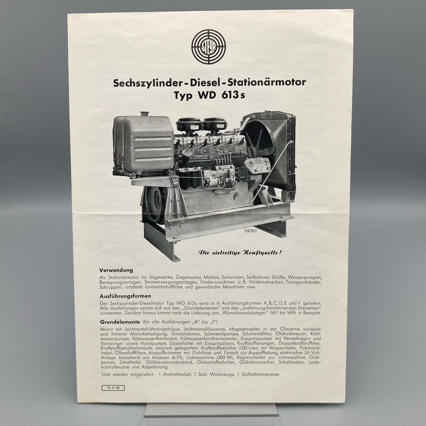 STEYR Prospekt Sechszylinder-Diesel-Stationärmotor WD 613s