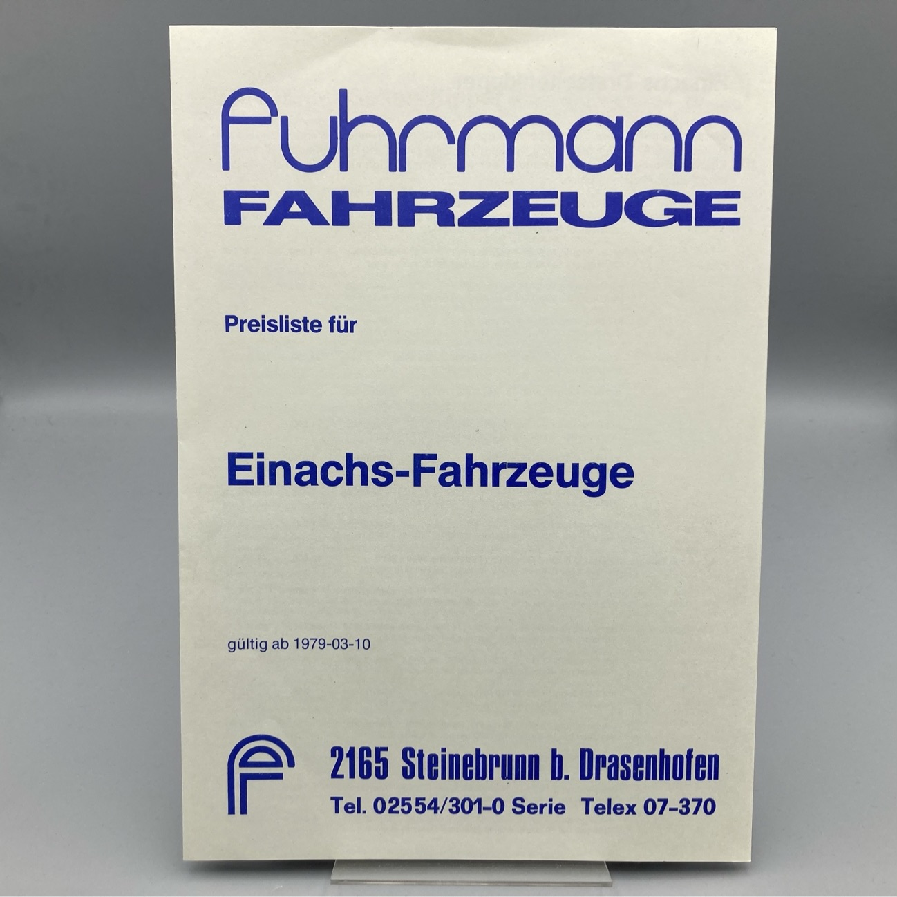FUHRMANN Preisliste Einachs-Fahrzeuge 1979